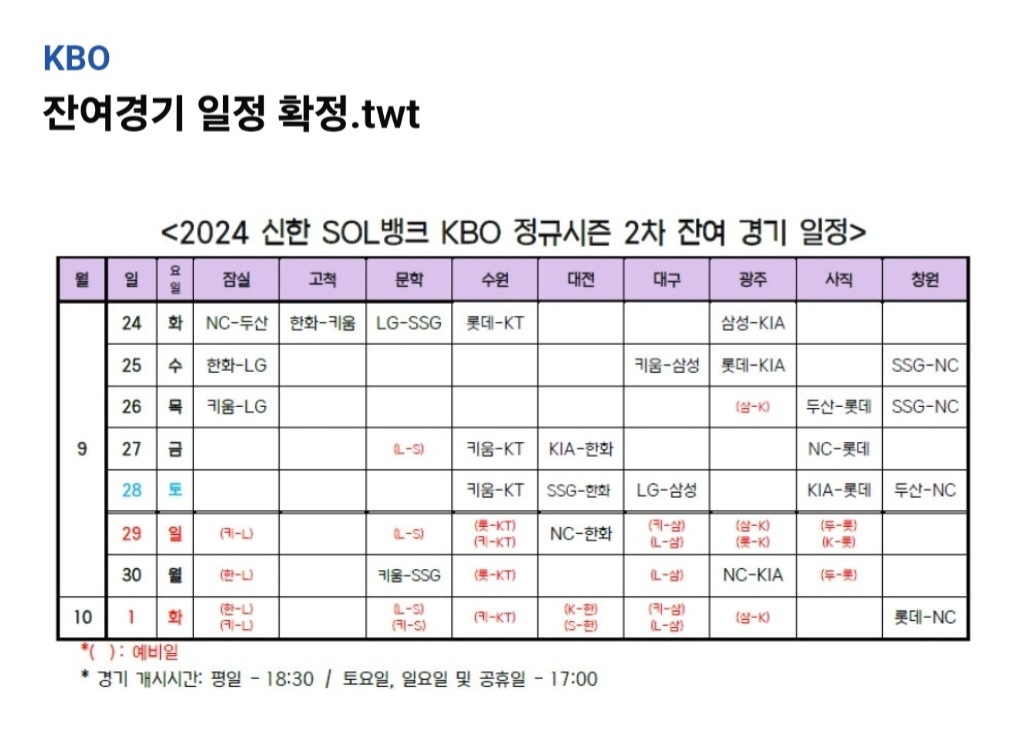 사자사랑방 - 잔여경기 일정 - 이미지 1