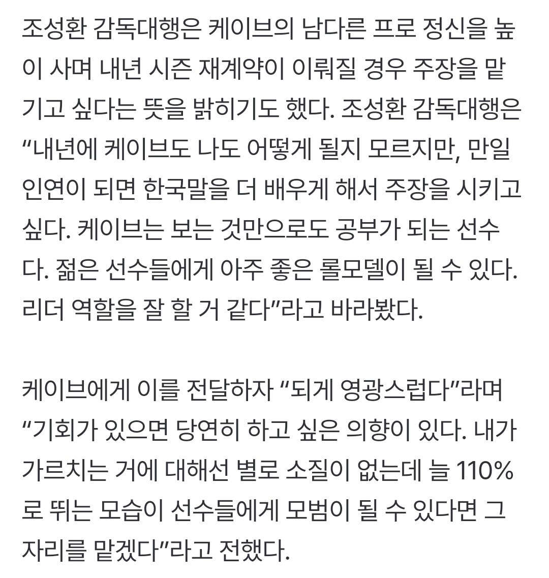 조성환 “한국어 가르쳐서 주장 맡기고파”